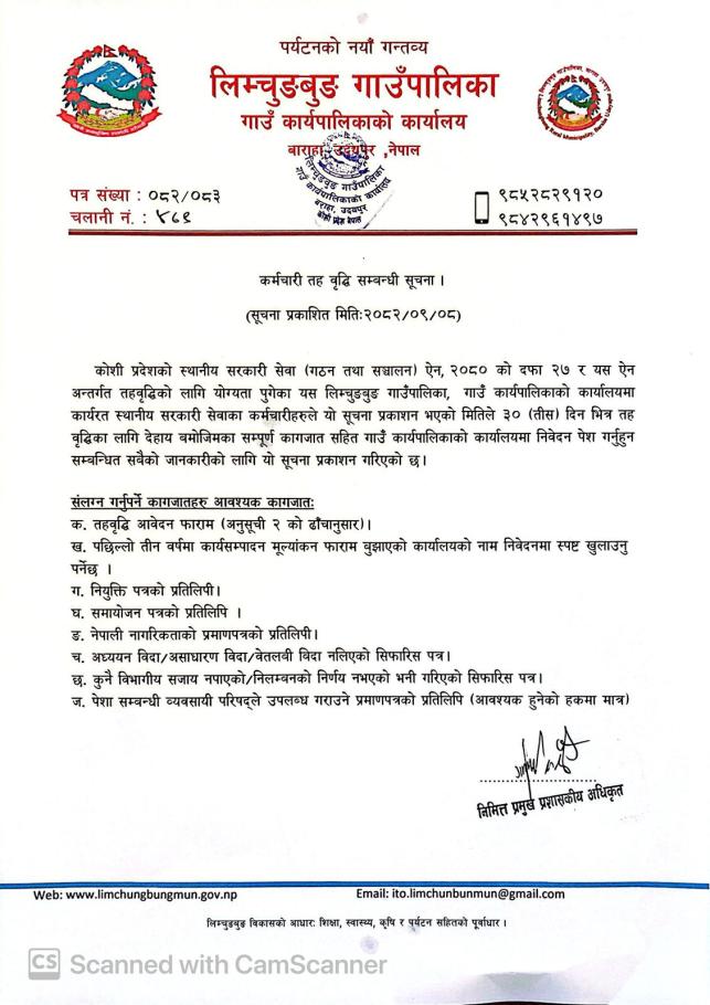 कर्मचारी तह वृद्धि सम्बन्धी सूचना।