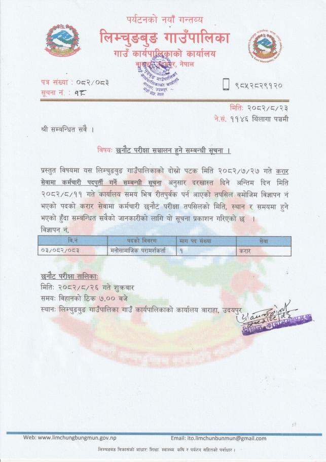 छनोट परीक्षा सञ्चालन हुेन सम्बन्धी सूचना । (मनोसामाजिक परामर्शकर्ता)