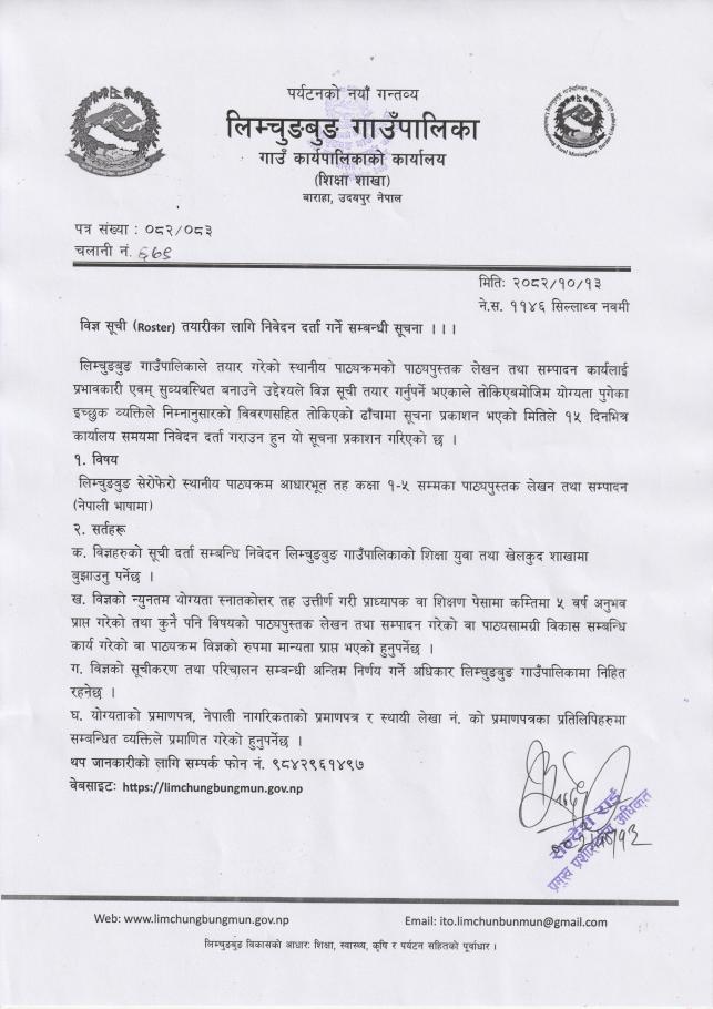 विज्ञ सुची (Roster) तयारीका लागि निवेदन दर्ता गर्ने सम्बन्धी सूचना ।