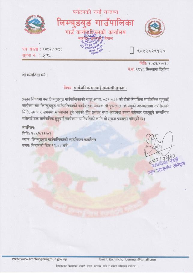 सार्वजनिक सुनुवाई कार्यक्रम सञ्चालन हुने सम्बन्धी सूचना ।