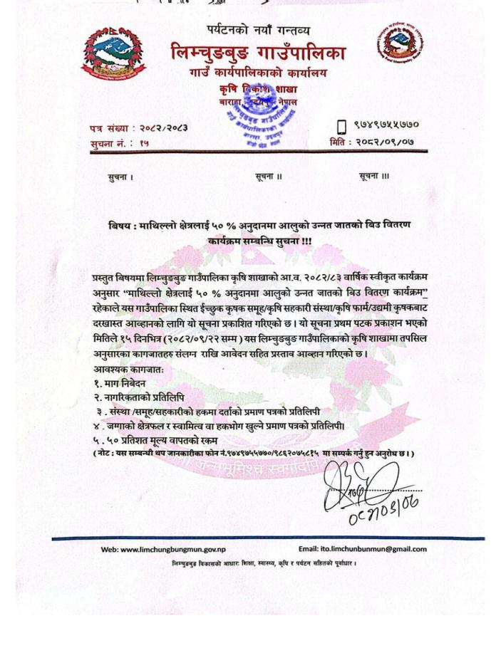 उन्नत जातको आलुको बिउ वितरण सम्बन्धि सूचना |