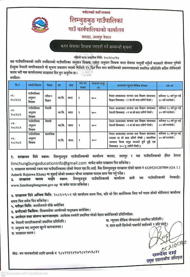 करार सेवामा शिक्षक पदपूर्ती गर्ने सम्बन्धी सूचना ।