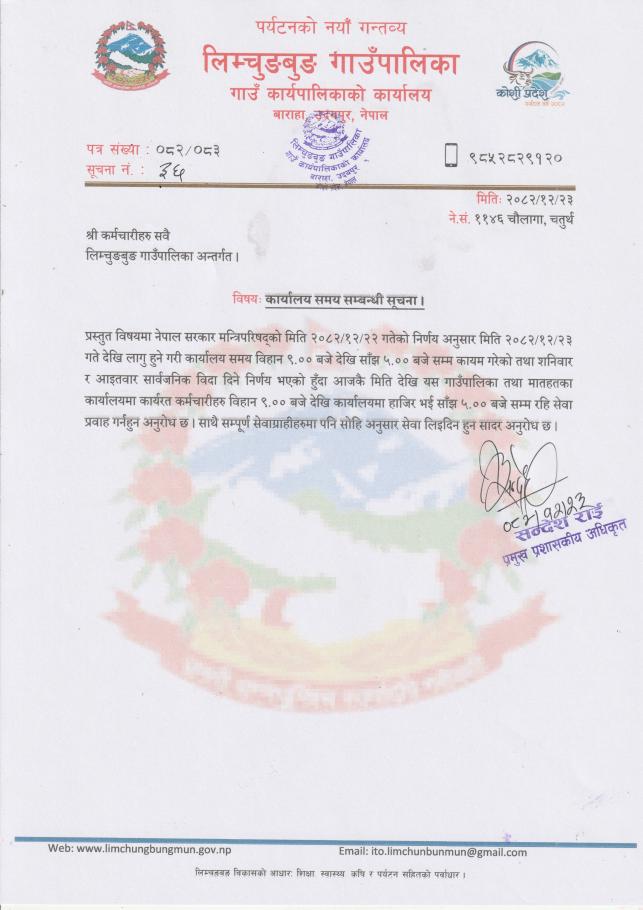 कार्यालय समय सम्बन्धी सूचना ।