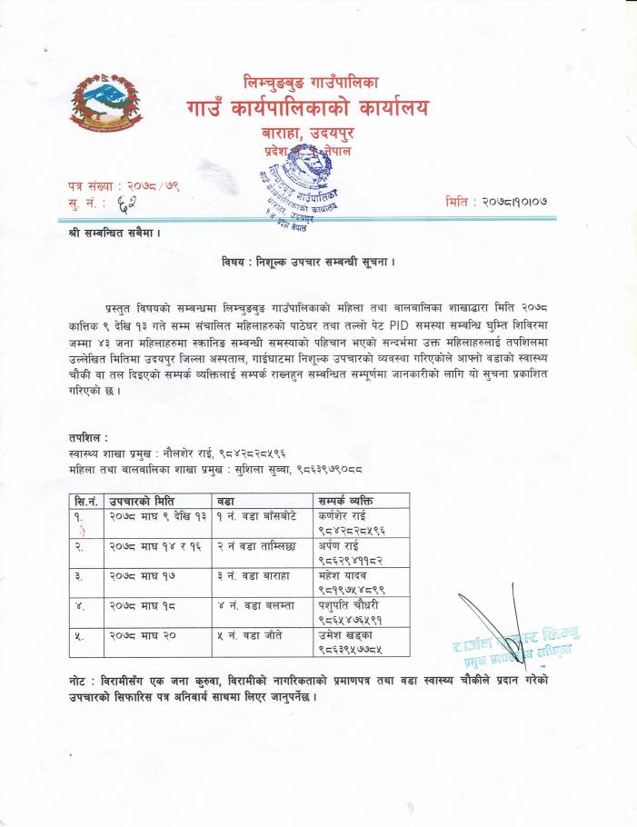 निशुल्क उपचार सम्बन्धी सूचना ।