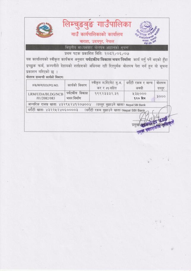 विद्युतीय माध्यमबाट वोलपत्र आह्वानको सूचना ।