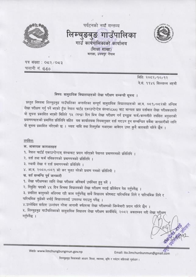 सामुदायिक विद्यालयहरुको लेखा परीक्षण सम्बन्धी सूचना ।