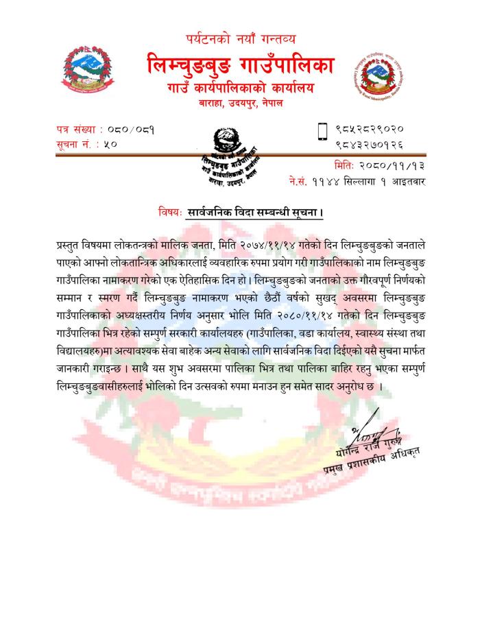 सार्वजनिक विदा सम्बन्धी सूचना ।
