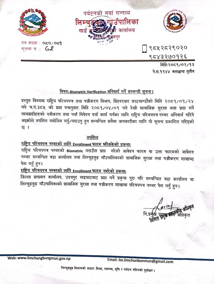 Biometric Verification अनिवार्य गर्ने सम्बन्धि सूचना।